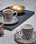 Asaf 24 Ayar Altın Yaldızlı 85 ml 12 Parça 6 Kişilik Çok Renkli Porselen Kahve Fincan Takımı
